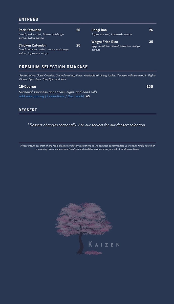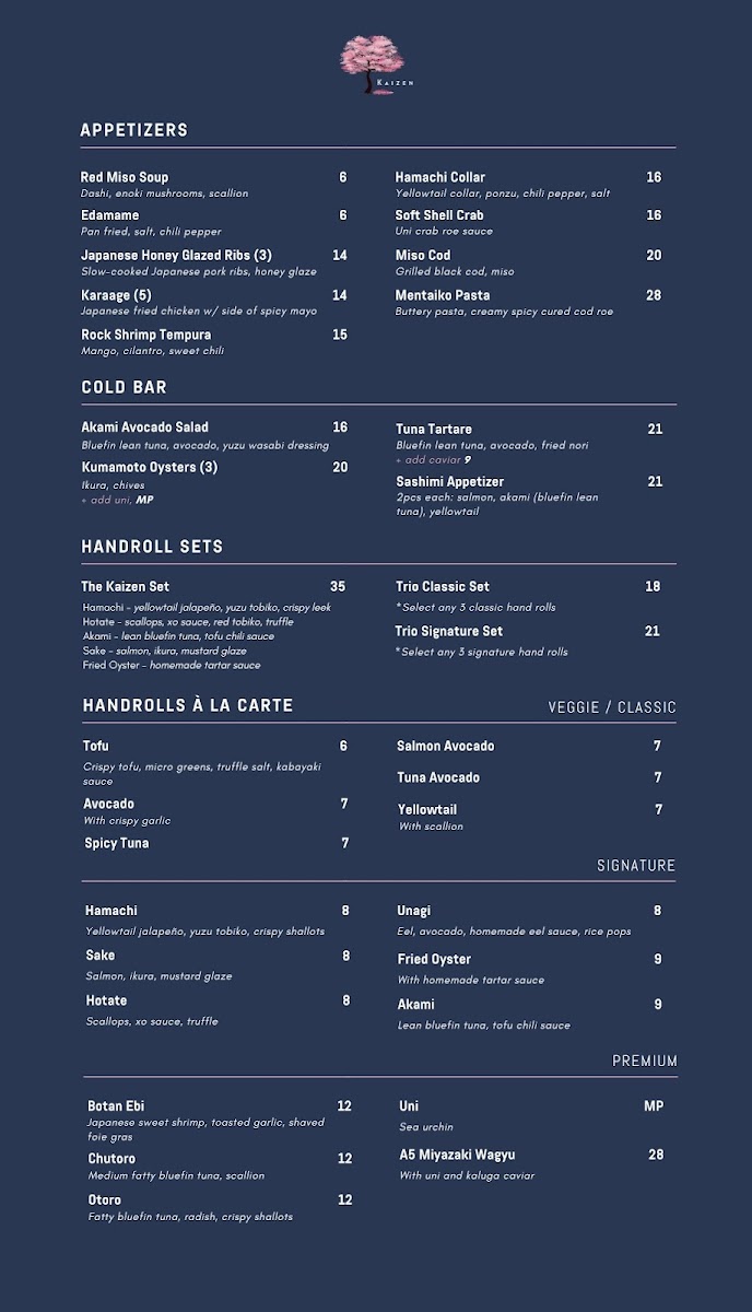 Looking for a sushi experience that goes beyond the ordinary? Kaizen: Omakase & Hand Roll Sushi Restaurant Menu offers a unique fusion of flavors that will leave you craving more. Located at 33-70 Farrington St, Queens, NY, this spot serves up mouthwatering sushi crafted with the freshest ingredients. Whether you’re in the mood for a personalized omakase experience or a hand roll bursting with bold flavors, there’s something on the menu for everyone.
